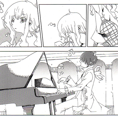 ピアノを弾き続ける、ロボット。 その姿を見つめ続ける、姫。 この6ページの読み切り『王宮ピアノ弾きの恋人』が手に届いたときに、「まるで絵本のような、おとぎ話のような」という決まり文句を頭に浮かばせながら、ページ数に入れられる情報量も考えつつ、最初の読者のつもりで読み始めました。